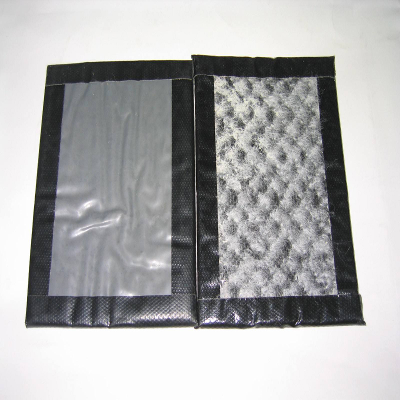 膨润土毯在安装过程在损坏(撕裂、刺穿等),可以从一卷新的膨润土毯上切割一块“补丁”盖在破损的地方来进行修补。补丁的四边距离破损的地方长度不能小于300mm,铺放“补丁”前应在破